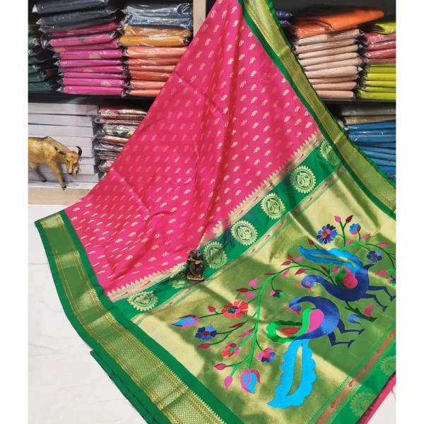 Traditional Appeal: With roots tracing back to the traditional Paithani weaving techniques, these sarees encapsulate the essence of Indian heritage. Each piece is a work of art that narrates stories of age-old traditions.
